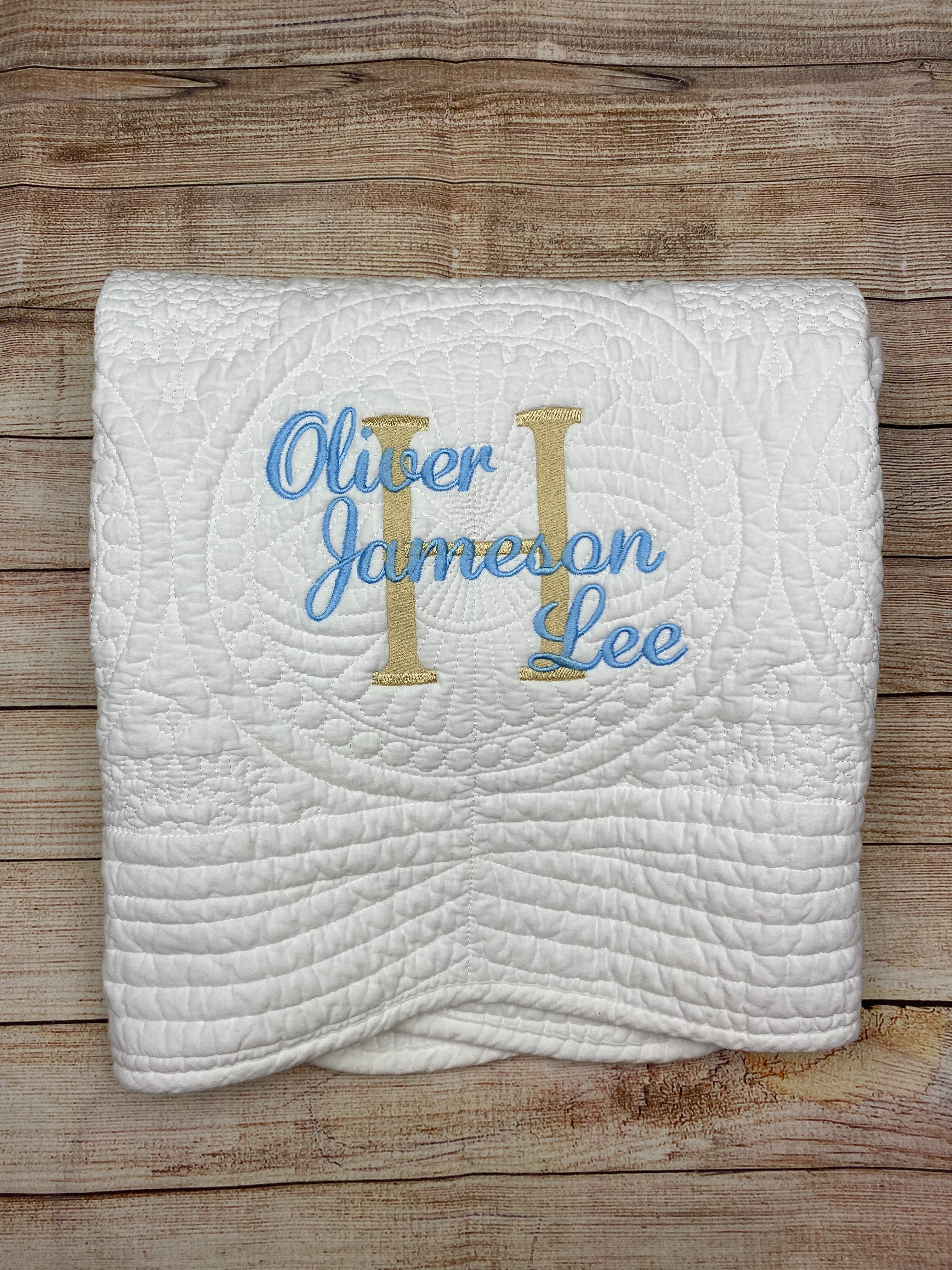 Monogrammed Baby Quilt, Personalized Blanket, Gold Monogrammed Blanket, Boy Quilt, Crib